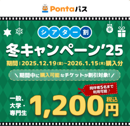 『シアター割』の割引クーポンを利用すると「チケット料金 一般」が1人あたり最大800円OFFなので、お得でオススメです。